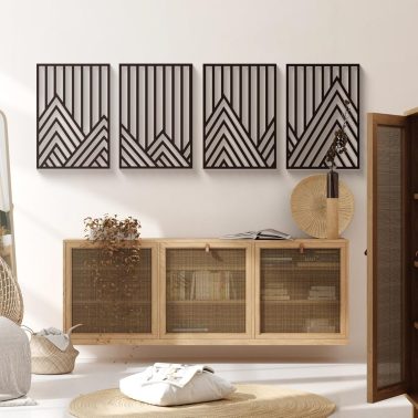 • 4 Pcs Black Abstract Mountain Line Metal Wall Art, 17 x 12'' Minimalist Décor Single Line Art Wall Décor, 3D Textured Sculptures, Decorative Forest Nature Abstract Line Minimalist Wall Décor Hanging for Living Room Bedroom Bathroom Study(Black, M Size 17 x 12'')