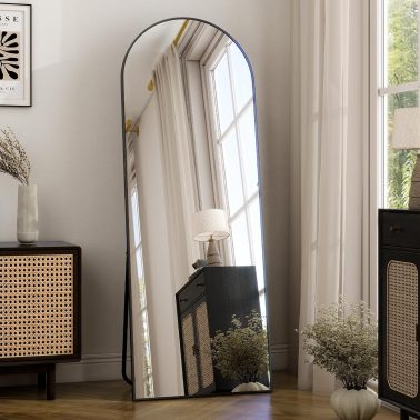 HARRITPURE 58″x18″ Arched Full Length Mirror Free Standing Leaning Mirror Hanging Mounted Mirror Aluminum Frame Modern Simple Home Decor for Living Room Bedroom Cloakroom, Black
